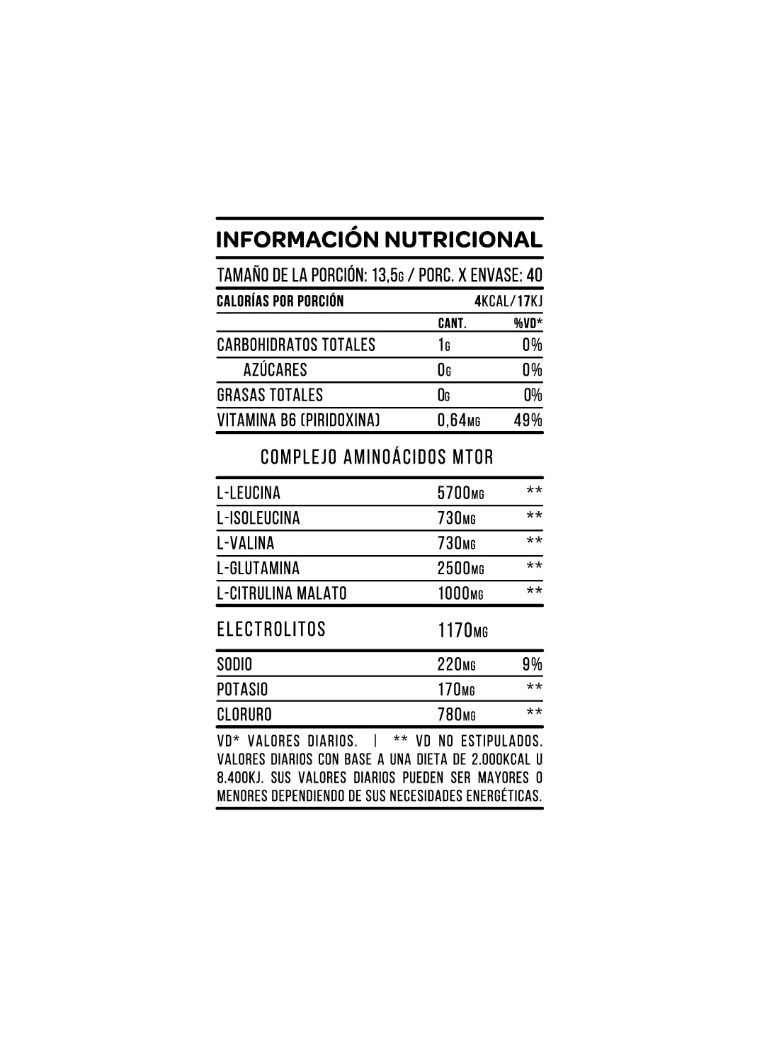 Como suplemento mezclar 1 scoop (13.5 g) en 500 ml de agua fria. En los dias de entrenamiento consumir 1 porcion durante el entranemiento y 1 porción luego del mismo.